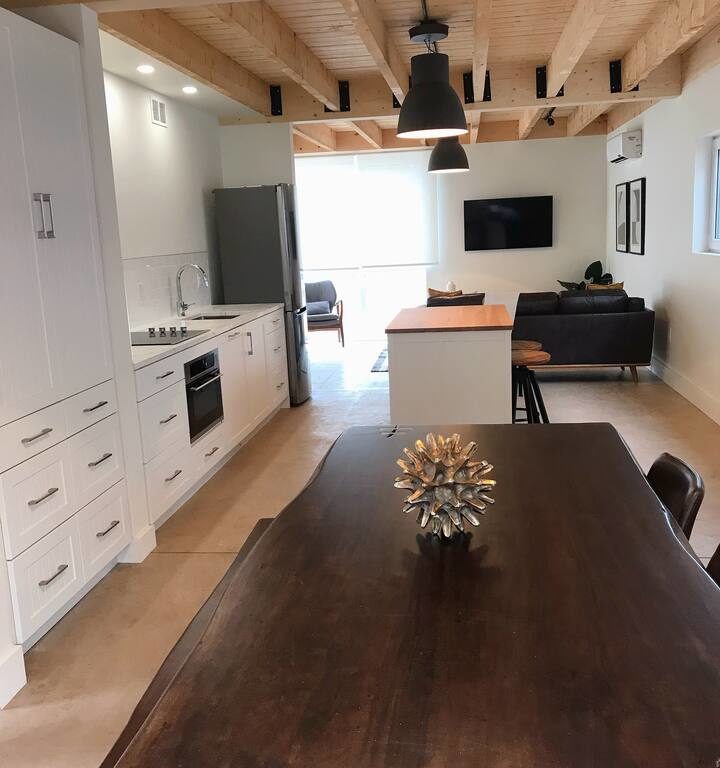 Amenities include a large galley kitchen, with an open concept to the living room, and all of the essentials you expect to find including wifi and parking. The bedrooms can be configured with a king bed or two XL twins.